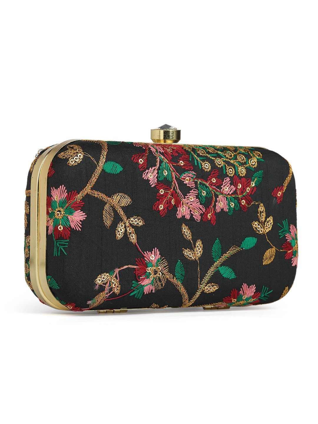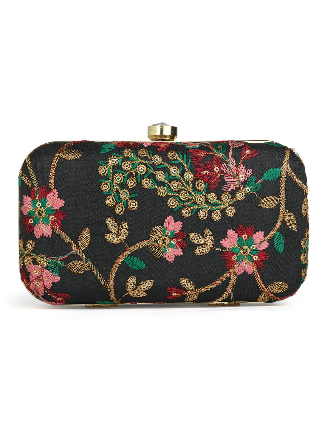 Black & Goldembroidered box clutches Has shoulder strap, 1 main compartment with twist closure