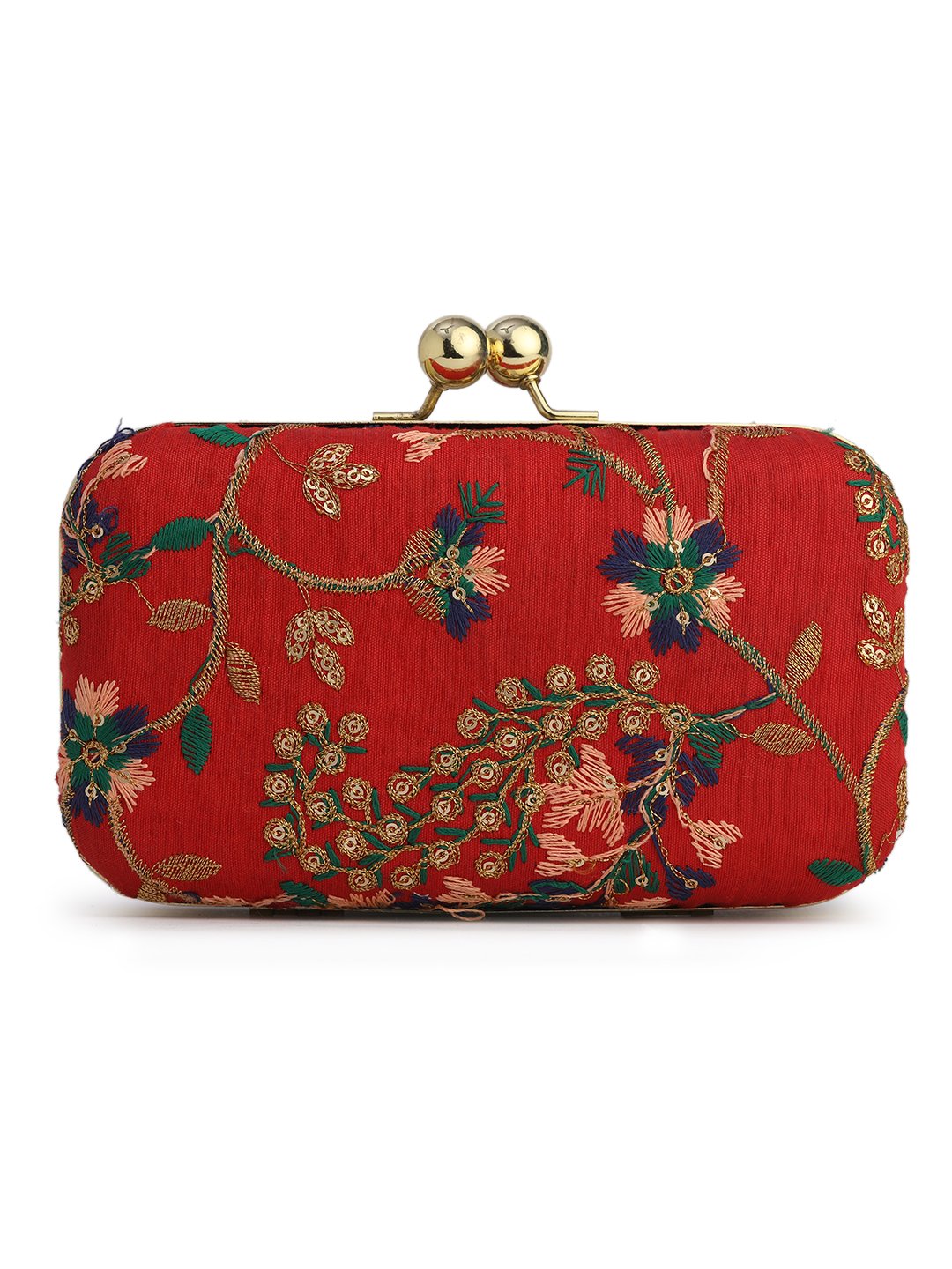 Combo Of Boho Bag And Red & Gold Embroidered Box Clutches For Girls and womens