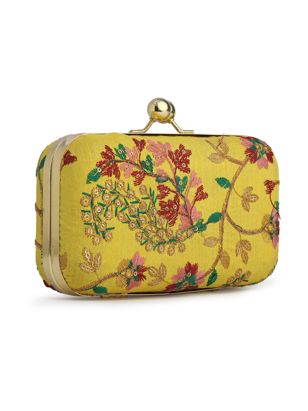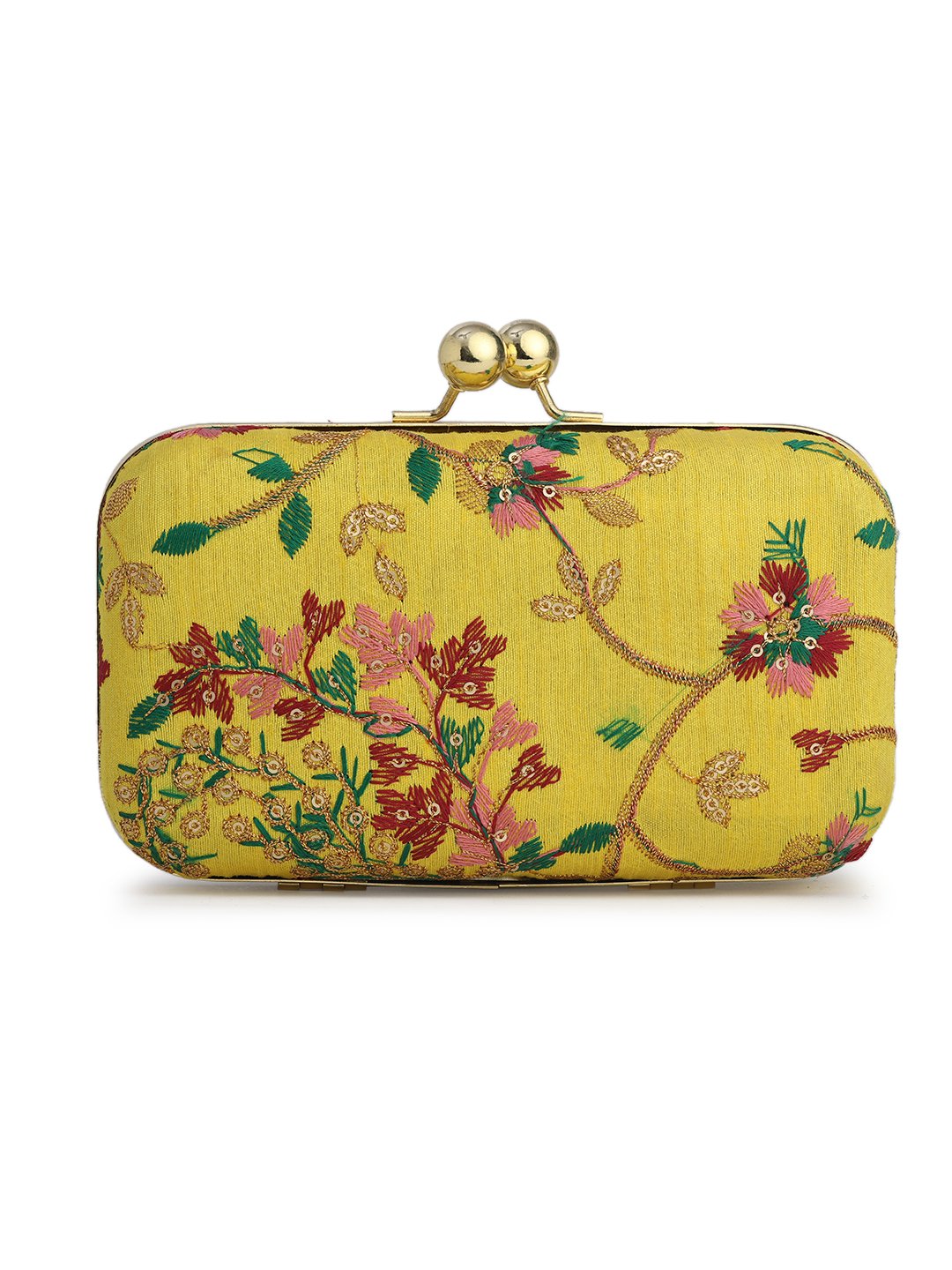Combo Of Boho Bag And Yellow & Pink Embroidered Box Clutches For Girls and womens