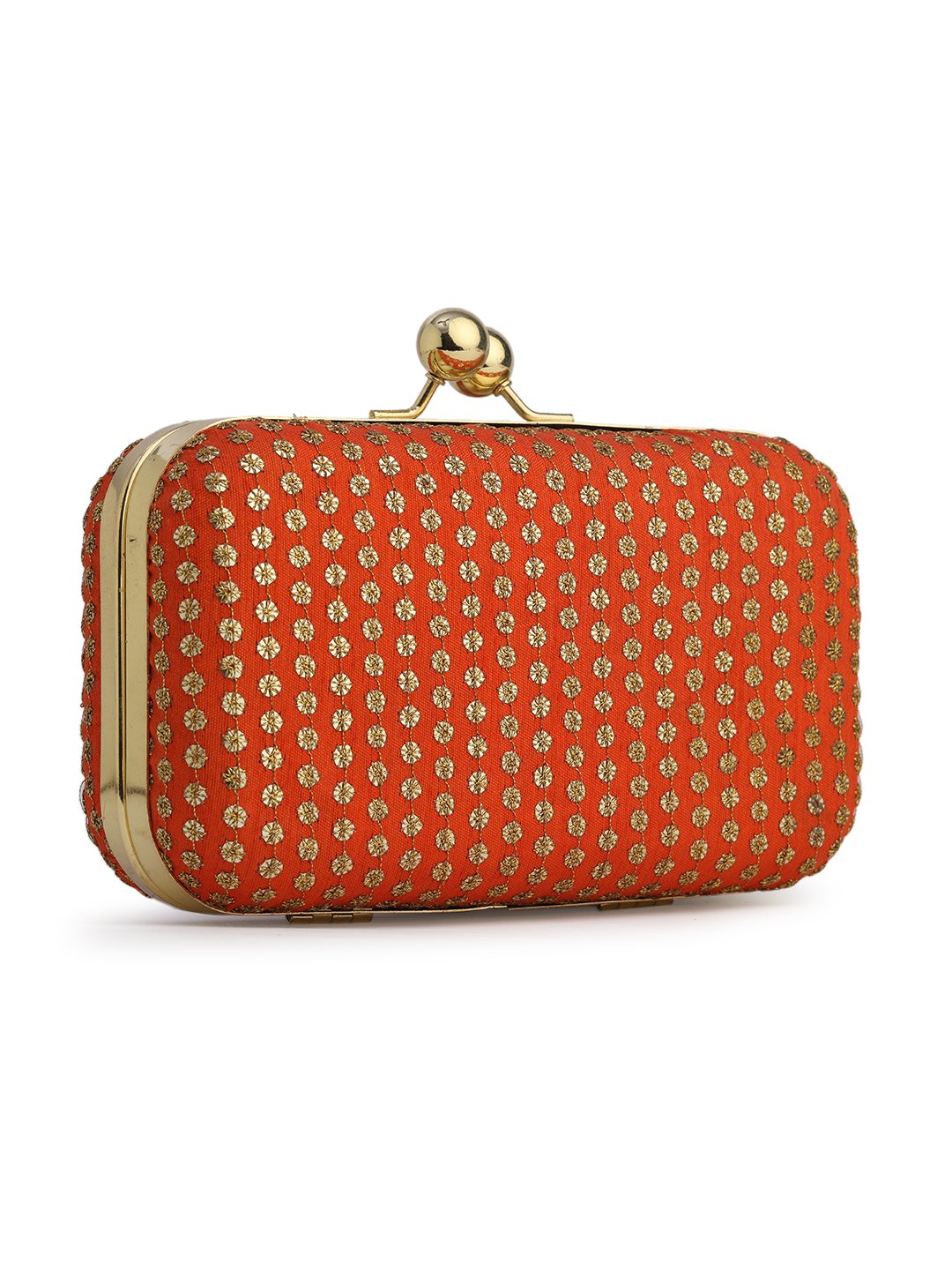 Orange & Gold Embroidered Box Clutches For Girls and womens