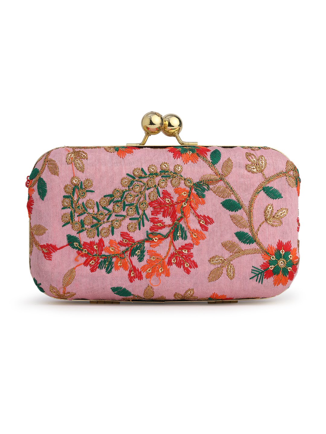 Pink & Gold Embroidered Box Clutches For Girls and womens(01)
